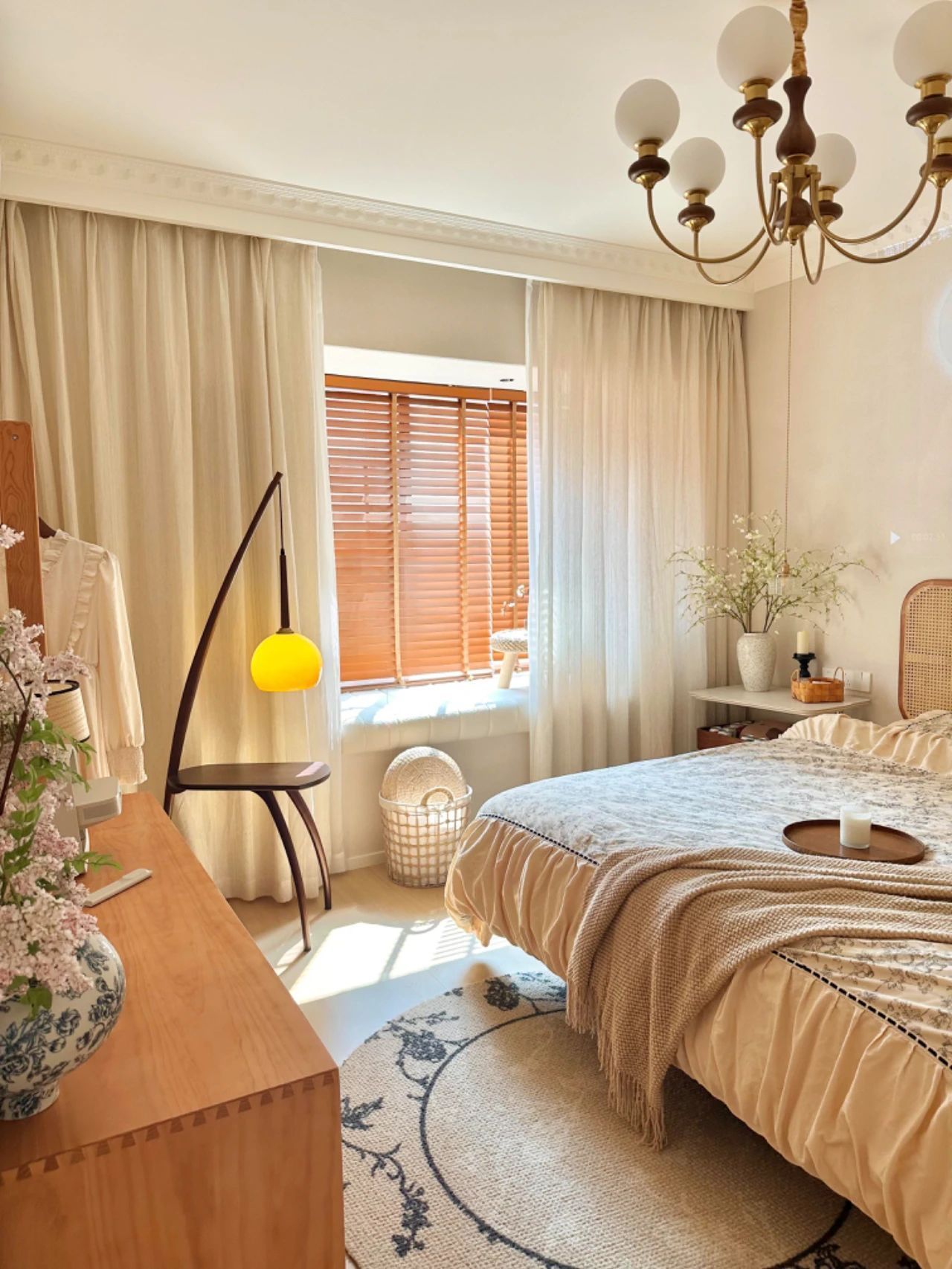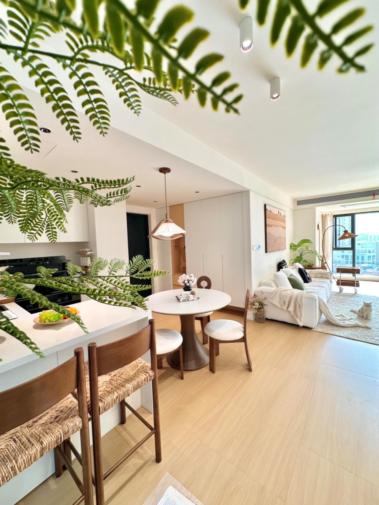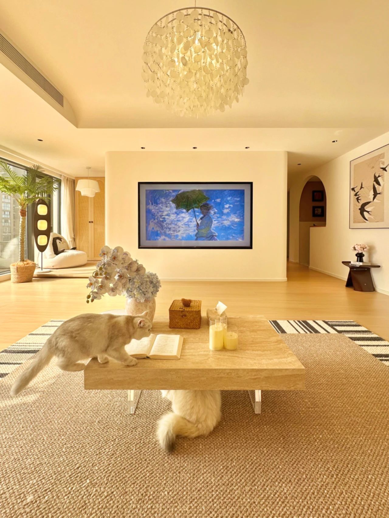 软装偏爱实木与岩板,像床、餐边柜等,再用跳色抱枕、装饰画点缀,软装电器共 14 万。