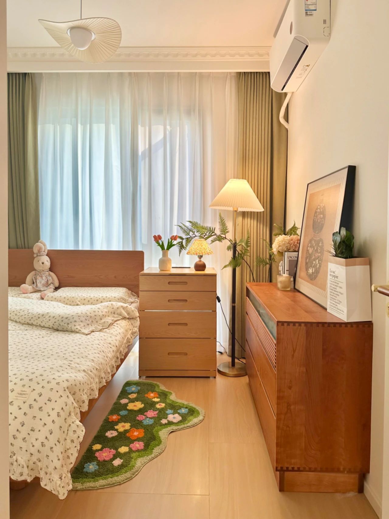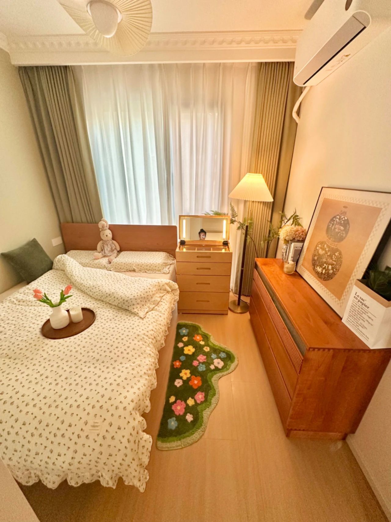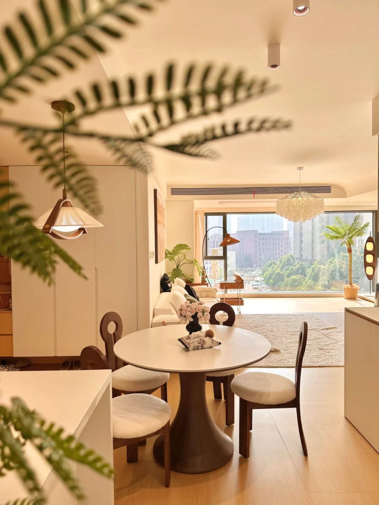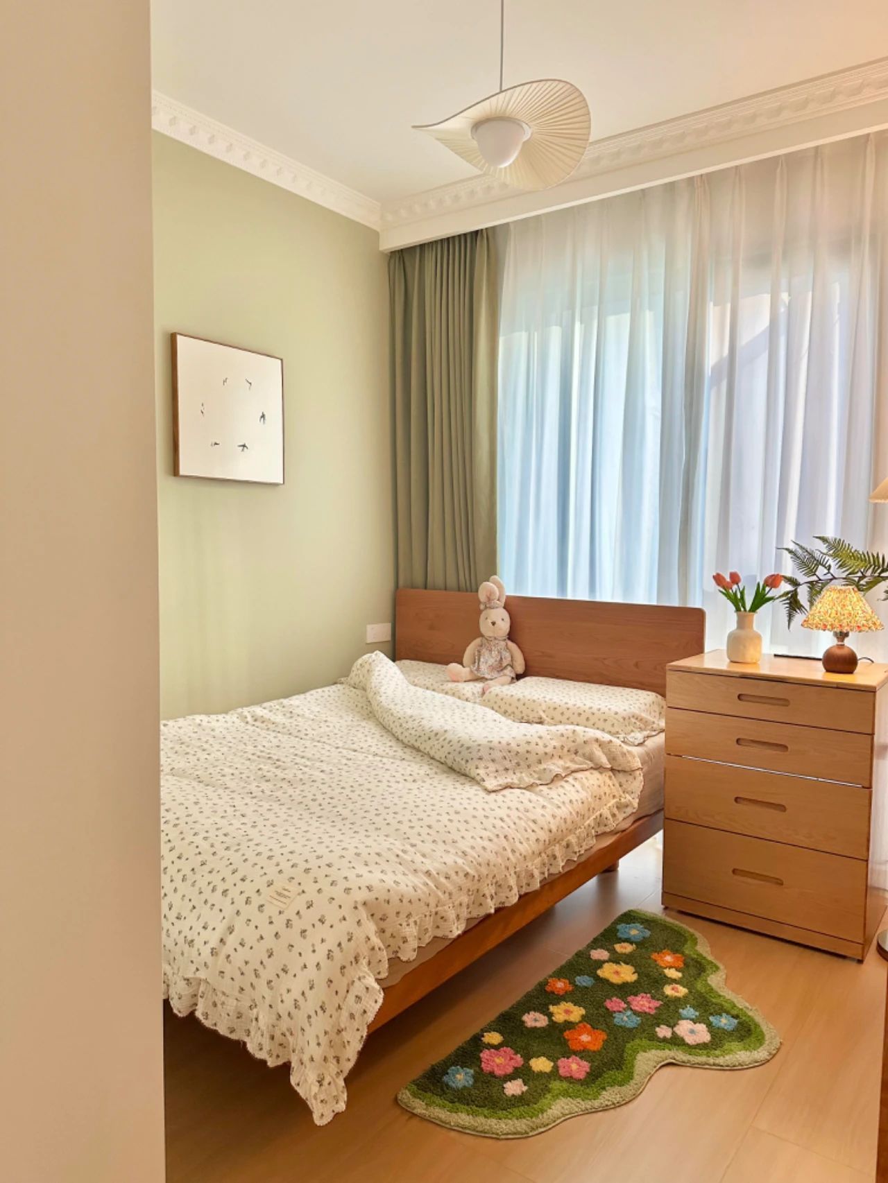 软装偏爱实木与岩板,像床、餐边柜等,再用跳色抱枕、装饰画点缀,软装电器共 14 万。